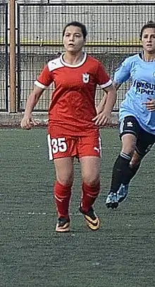 She played at the 2015–16 UEFA Women's Champions League qualifying round matches and scored the only goal of her team in the match against FC Minsk.[5][6][7] She scored her team's second goal at the 2015–16 UEFA Women's Champions League qualifying round match against Hibernians F.C. that ended 5–0 for Konak Belediyespor.[8]