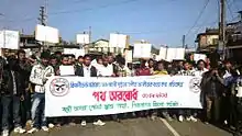 The Hill State movement developed in the Gari and Khasi hills.[22] The movement emerged at a meeting in Shillong on 16–17 June 1954 called by Captain Wiliamson Sangma of the Garo Hills District Council to discuss creation of a separate hill state and amendments to the Sixth Schedule.[23] All the participants were against the attempt to impose Assamese as the state language.[24] The representatives from the United Mikir and North Cachar Hills and the Lushai Hills wanted to remain within Assam but with greater autonomy, while those from the Khasi, Jaintia and Garo communities wanted a separate state or states.[23] The Naga National Council became dominated by separatists.[17] The Naga leader Angami Zapu Phizo did not participate in the Hill State movement since he was pursuing independence for Nagaland alone.[23]