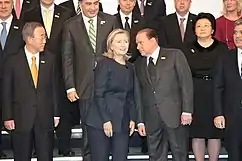 In December 2009, Clinton attended the Copenhagen United Nations Climate Change Conference, where she pushed forward a last-minute proposal of significant new amounts of foreign aid to help developing countries deal with the effects of global warming, in an attempt to unstick stuck negotiations and salvage some sort of agreement at the conference.[95][96] The secretary said, "We're running out of time. Without the accord, the opportunity to mobilize significant resources to assist developing countries with mitigation and adaptation will be lost."[95] The amount of aid she proposed, $100 billion, was in the modest terms of the Copenhagen Accord that was agreed to by the summit.[97]