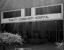 Hillsboro Medical Center,[1] formerly Tuality Community Hospital, is a medical care facility located in Hillsboro in the U.S. state of Oregon. The 167-bed facility was founded in 1918 in downtown and is one of two hospitals in Hillsboro, Washington County's most populous city. Since 2019, it has been operated by OHSU Health, and previously had partnerships with Oregon Health & Science University and Pacific University.[2][3] At six stories tall, the main building was tied for the tallest in the city with the Hillsboro Civic Center as of 2006.[4]