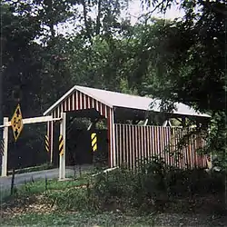 The Himmel's Church Covered Bridge crosses over Schwaben Creek on Middle Creek Road, east of Rebuck, Pennsylvania, in Washington Township, Northumberland County, Pennsylvania. It was built in 1874, and rehabilitated in 1973. It is a King post truss style wooden covered bridge, with a length of 44-foot-long (13 m).[2] It currently remains in use to automobile traffic.