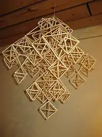 Himmeli (from Swedish: himmel – "sky") are traditional Northern European mobiles made from reeds or straw decorated with pieces of wood, eggshells, bird feathers and yarn. The himmeli base shape consists of 12 fragments, which symbolize the 12 months.[1] They are used as decorations from Christmas until Midsummer. Modern himmeli are also made of plywood, paper and even plastic straws.[2]