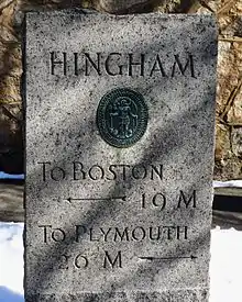 {{cite journal}}: Cite journal requires|journal=(help) - "Hingham, Massachusetts". Hingham, Massachusetts. Retrieved August 25, 2012.