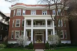 Hinman Apartments is a historic apartment building at 1629-1631 Hinman Avenue in Evanston, Illinois. Built in 1904, the three-story brick building has six apartments. Architects Atchison & Edbrooke, who also designed Evanston's Ridgewood Apartments, designed the building in the Classical Revival style. The building's design includes a two-story portico supported by Ionic columns, bow windows on either side of the portico, and a dentillated cornice and parapet. The apartments are arranged in a railroad plan, with rooms arranged along a long central hallway; while this layout was often associated with cheap apartments, the Hinman still targeted upper-class residents with its design and amenities.[2][3]