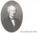 Dr. Hinrich Johannes Rink (first name sometimes as Henrik) (26 August 1819 – 15 December 1893) was a Danish geologist,[1] one of the pioneers of glaciology,[2] and the first accurate describer of the inland ice of Greenland.[3] Rink, who first came to Greenland in 1848, spent 16 winters and 22 summers in the Arctic region,[3] and became notable for Greenland's development. Becoming a Greenlandic scholar and administrator,[4] he served as Royal Inspector of South Greenland and went on to become Director of the Royal Greenland Trading Department.[5] With "Forstanderskaber", Rink introduced the first steps towards Greelandic home rule.[5]