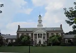 The Robbins Park district just east of downtown between Garfield Street and County Line Road, as well as between Hinsdale Avenue and 9th Street, is a National Register Historic District as well.[7] The district includes two of Hinsdale's seven buildings individually listed on the National Register of Historic Places, as well as seven of seventeen Hinsdale Historic Landmarks.[8]