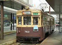 ![]() A Hiroden streetcar at Hiroden Hiroshima Station in Hiroshima, Japan | |