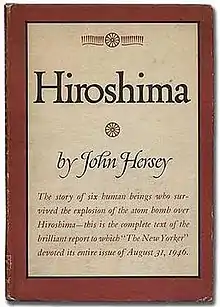 The work was originally published in The New Yorker,[1] which had planned to run it over four issues but instead dedicated the entire edition of August 31, 1946, to a single article.[2] Less than two months later, the article was printed as a book by Alfred A. Knopf. Never out of print,[3] it has sold more than three million copies.[1][4] "Its story became a part of our ceaseless thinking about world wars and nuclear holocaust," New Yorker essayist Roger Angell wrote in 1995.[1]