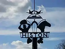 Included on the Histon Village Sign is a man in a stove hat holding a large rock. This represents Moses Carter (1801–1860) a local strongman who lived in the village in the nineteenth century. Carter was alleged to be over seven feet tall, and famously carried a large stone from a building site to The Boot public house. The stone is still in the pub's garden. Carter is affectionately known locally as 'The Histon Giant'.[17]