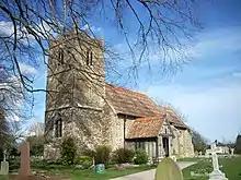 The first recorded reference to the church was in 1217, but in about 1270 it was modernised, turning it into a cruciform-style church. Much of the building work was carried out in the 13th and 14th centuries, but extensive restoration work and alterations took place in the 19th and 20th centuries.[21] There have been bells in the church since at least 1553; the oldest surviving bell in the tower is dated at 1556 and was made by Austen Bracker of Islington, Norfolk.[22] The bell is listed for preservation by the central council as it is Bracker's only dated bell.