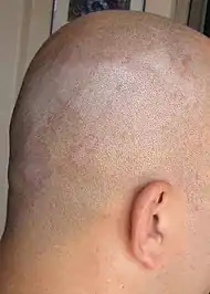 | Lichen sclerosus | Hyperkeratosis, atrophic epidermis, sclerosis of dermis and dermal lymphocytes.[7] | ![]() | ||