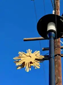 Along the streets of Historic FilipinoTown are lamp posts adorned with Filipino cultural medallions. These medallions decorate the tops of lamp posts with different symbols. Roel Punzalan is the artist who designed the streetlight art. His vision for the project was to tie the Filipino values of "kapwa," "lakbay," and "kapayapaan" to the unique interaction of Filipino culture and Historic FilipinoTown.[42] The streetlight art served both as an educational opportunity to share Filipino culture and history and as a way to improve pedestrian safety. Streetlights were placed at 17 different intersections, and about 54 lamp posts were adorned with Punzalan's art.[43]