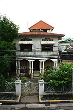 The Perez House is a two-storey apartment-type structure, built between 1931 and 1932 located in Plaza Hugo.[6] It was originally owned by Jaime S. Perez, an en kargador or tax collector during the pre-war. It is within near proximity to the Santa Ana Church (Manila) and Plaza Hugo, the former center of main activity in Santa Ana, Manila. The ground floor was utilized before as a commercial space, exhibiting ecclesiastical sculptures and art. The second floor was utilized as a residential space for owner/s and bed spacers. At present, the ground floor was still used as a commercial space (sari-sari store) while the second floor was converted into one-room bedroom. This utilization of spaces was an example of adaptive Re-use, least option in Heritage Conservation.