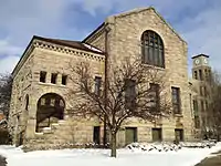 During Baldwin Institute's existence, the Baldwin Wallace Conservatory of Music was established. In 1898, the undergraduate-only conservatory was founded by Dr. Albert Riemenschneider.[15] Before this time, music classes were offered at the Baldwin Institute for one dollar extra per term. In 1912, land donated by the citizens of Berea was used to expand the institution and improve the music facilities. The Kulas Musical Arts Building was constructed, housing a $25,000 pipe organ.[1] Later, in 1913 the Conservatory would expand into an adjacent residence hall (Merner-Pfeiffer Hall), and an enclosed bridge was constructed connecting the two buildings.[16] This building was then renovated in 1939. In 2009, the Berea First Congregational Church became part of the college. Then, in 2011, there was an expansion to connect the Kulas Musical Arts Building with the Berea First Congregational Church.[17]
