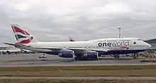 ex-BOAC Boeing 747 with "British airways" branding and Speedbird tail