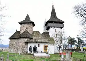 Treatment of Orthodox Christians worsened under Louis I of Hungary, who ordered the arrest of Eastern Orthodox priests in Cuvin and Caraș in 1366.[139] He also decreed that only those who "loyally follow the faith of the Roman Church may keep and own properties" in Hațeg, Caransebeș, and Mehadia.[140] However, conversion was infrequent in this period; the Franciscan Bartholomew of Alverna complained in 1379 that "some stupid and indifferent people" disapprove of the conversion of "the Slavs and Romanians".[141] Both Romanians and Catholic landowners objected to this command.[141][142] Romanian chapels and stone churches built on the estates of Catholic noblemen and bishops were frequently mentioned in documents from the late 14th century.[130]