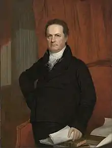 On May 5, 1784, the Regents held their first meeting, instructing Treasurer Brockholst Livingston and Secretary Robert Harpur (who was Professor of Mathematics and Natural Philosophy at King's) to recover the books, records and any other assets that had been dispersed during the war, and appointing a committee to supervise the repairs of the college building. In addition, the Regents moved quickly to rebuild Columbia's faculty, appointing William Cochran instructor of Greek and Latin.[18] In the summer of 1784, after the legislature passed the act restoring the college, Major General James Clinton, a hero of the revolutionary war, brought his son DeWitt Clinton to New York on his way to enroll him as a student at the College of New Jersey. When James Duane, the Mayor of New York and a member of the Regents, heard that the younger Clinton was leaving the state for his education, he pleaded with Cochran to offer him admission to the reconstituted Columbia. Cochran agreed — partly because DeWitt's uncle, George Clinton, the Governor of New York, had recently been elected Chancellor of the College by the Regents — and DeWitt Clinton became one of nine students admitted to Columbia in the year 1784.[18]
