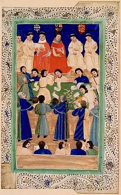 Feudalism had not always been a part of English society, rather than being positively imposed by the monarchs prior to the Norman Invasion.[6] However, from 1348 everything changed as the Black Death swept through Europe, killing a third of the population. People like the poet Geoffrey Chaucer had seen subservience as part of a natural social order, ordained by God.[7] But if landowners had themselves survived the plague, the peasants' labour on the land had become very scarce. Ironically, the surviving peasants were in a greater position of economic power, in claims or bargaining for wages. Feudalism began to break down.[8] First, serfs could undergo "commutation", where the lord simply agreed to accept money rents from tenants instead of labour services. This did not mean freedom itself, but abandoning forced labour and payments in kind to landlords meant the open evidence of servility was concealed. In disputes, royal courts were increasingly biased toward declaring a peasant was free. Second, through an act of manumission lords could voluntarily grant freedom and this was increasingly done, after the plague, if the serf or a relative made a payment of money. Third, the common law stated that if a serf lived on free soil, as in a chartered town or Royal demesne land, for a year and a day, they would become free.[9] The nobility and the King reacted to the rising bargaining power of the peasantry by fixing wages,[10] and violently suppressing any uprisings, like the Peasants' Revolt in 1381.[11] Yet this combination of factors, slowly but surely, meant that by 1485 just one per cent of the population were left in bondage.[12] Formal subservience was increasingly seen as a social scar. In 1523 Justice Anthony Fitzherbert wrote that the remainder of bondmen was "the greatest inconvenience that now is suffred by the lawe."[13]