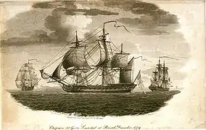 Several notable naval engagements occurred off the Halifax station. Most dramatic was the victory of the Halifax-based British frigate HMS Shannon which captured the American frigate USS Chesapeake and brought her to Halifax as prize. As the first major victory in the naval war for the British, the capture raised the shaken morale of the Royal Navy. Two-thirds of the men that followed British Captain Philip Broke in the boarding party were wounded or killed.[54] The casualties, 228 dead or wounded between the two ships' companies, were high, with the ratio making it one of the bloodiest single ship actions of the age of sail.[54] It had the single highest body count in an action between two ships in the entirety of the war.[55] By comparison, HMS Victory suffered fewer casualties during the much longer Battle of Trafalgar.