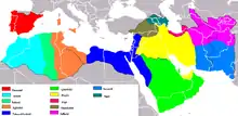 The following timeline can serve as a rough visual guide to the most important polities in the Islamic world prior to the First World War. It covers major historical centers of power and culture, including Arabia, Mesopotamia (modern Iraq), Persia (modern Iran), Levant (modern Syria, Lebanon, Jordan and Israel/Palestine), Egypt, Maghreb (north-west Africa), al-Andalus (Iberia), Transoxania (Central Asia), Hindustan (including modern Pakistan, North India and Bangladesh), and Anatolia (modern Turkey). It is necessarily an approximation, since rule over some regions was sometimes divided among different centers of power, and authority in larger polities was often distributed among several dynasties. For example, during the later stages of the Abbasid Caliphate, even the capital city of Baghdad was effectively ruled by other dynasties such as the Buyyids and the Seljuks, while the Ottoman Turks commonly delegated executive authority over outlying provinces to local potentates, such as the Deys of Algiers, the Beys of Tunis, and the Mamluks of Iraq.