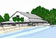 The Cedar Beach Club was established in 1880 and was the first hotel on this site. The property was purchased by the North Lake and River Association. Judge John V. Pettit of Wabash, Indiana became president of the association with individuals from northern Indiana towns of Alexandria, Goshen, Peru, Wabash, and Huntington joining and all of which were followers of Izaac Walton which would later produce the Izaak Walton League[4] an early environmental group. A simple oblong, two-story, gabled roof club house was constructed with 50 bedrooms and a 125-seat dining room. The North Lake and River Association financially collapsed in 1882 with the property being sold by the sheriff to the Cedar Beach Association. In 1887 the property was transferred to the Cedar Beach Club for $7000. James B. Suitt of Indianapolis was the president of the club which included James T. Layman, an Indianapolis wholesaler who had served on the Indianapolis City Common Council and Board of Aldermen 1877–1884. Addison H. Nordyke, flour mill manufacturer. William H. Holliday, F.T. Holliday, J.A. Lemcke, Robert W. Cathcart, John H. Spann, Thomas H. Spann. In 1891 the club burned. It had the first seawall on Wawasee made of logs.