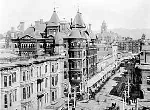 Los Angeles had several active "Vigilance Committees" during that era. Between 1850 and 1870, mobs carried out approximately 35 lynchings of Mexicans—more than four times the number that occurred in San Francisco. Los Angeles was described as "undoubtedly the toughest town of the entire nation."[51] The homicide rate between 1847 and 1870 averaged 158 per 100,000 (13 murders per year), which was 10 to 20 times the annual murder rates for New York City during the same period.[52]
