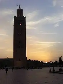 Things soon began to fall apart. A nine-year plague enveloped Morocco in 1598–1607, weakening the country tremendously, and taking al-Mansur in 1603.[100] His successor Abu Faris Abdallah was acclaimed in Marrakesh, but the jurists of Fez elevated his brother Zidan al-Nasir instead. Zidan managed to prevail and entered Marrakesh in 1609. But now another brother, Muhammad al-Sheikh al-Ma'mun revolted in the north, and soon Zidan was reduced to Marrakesh.[101] As Saadian power buckled, Morocco fell into anarchy and fragmented into smaller pieces for much of the next century. Zidan was driven out of Marrakesh by a religious leader, the self-proclaimed mahdi Ahmed ibn Abi Mahalli in 1612, and was restored only in 1614 with the assistance of another religious leader, Yahya ibn Abdallah, a Sufi marabout from the High Atlas, who subsequently tried to exert his own power over the city from 1618 until his death in 1626. Zidan somehow found the time and resources during all this to complete the Saadian Tombs at the Kasbah Mosque. However, there were not enough resources to complete a grand Saadian mosque begun by Ahmed al-Mansur, slated to be called the Jemaa al-Hana ("Mosque of Prosperity"); local people soon began to call the unfinished site the Jemaa el-Fnaa (Mosque of the Ruins), what would become the future central square of Marrakesh.[102]