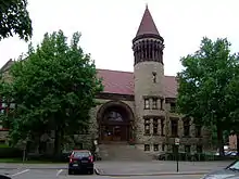 The Ohio State University was founded in 1870 as a land-grant university in accordance with the Morrill Act of 1862 under the name of Ohio Agricultural and Mechanical College. Initially, it was thought that one of Ohio's two existing public universities (Ohio University and Miami University) would be designated as the land-grant institution, and each engaged in a vigorous competition to win over the state legislature. At the strong urging of Republican stalwart Governor Rutherford B. Hayes, however, it was ultimately decided to establish a new university to be located near the legislature in Columbus. Hayes' role in founding the university is recognized in Hayes Hall (named after Rutherford, not Woody), the oldest building still standing on the campus.[1] Hayes later noted that the founding of Ohio State was one of his two greatest achievements—the other being Ohio's ratification of the Fifteenth Amendment.[1][2]
