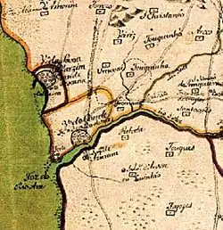In the Norman incursion of 1015–1016, the Monastery of Vairão was sacked. Located in the South of the Ave River, the monastery hold and recorded events in the region since 921.[18] In 1016, inland Vermoim Castle suffered a bloody assault, by Norman pirates, in which the Portuguese count Alvito Nunes was killed.[13] In Póvoa de Varzim their incursions went from the coast to the Este River, and the Ave River established as the south limit. Various hints indicate a Norse settlement in Villa Euracini after those invasions came to an end.[19] During the Middle Ages, the name Euracini evolved to Uracini, Vracini, Veracini, Verazini, Verazim, and eventually Varazim.[8]