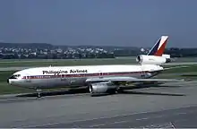 Despite PAL's successful exit from receivership, international safety concerns regarding the Philippine aviation industry severely hindered its expansion plans. The United States Federal Aviation Administration downgraded the Philippines' aviation industry from Category 1 to Category 2 in January 2008, preventing PAL from increasing its flights to the United States from 33 per week or from switching the type of aircraft used unless the airline undertakes a wet-lease agreement with a different carrier.[32] The FAA decision effectively stalled PAL's previously announced intentions to expand its presence in the US market with routes to San Diego, Seattle, Chicago, Saipan and New York City.[32] On March 30, 2010, Philippines-based carriers were placed in an EU aviation blacklist (no longer true as of 2019),[33] banning PAL from flying to any European destinations. Since 2013, PAL is no longer in the blacklist. Nonetheless, PAL continued its route expansion plans in the Asia-Pacific region, resuming services to Riyadh with a four times weekly Boeing 747 service four years after it was suspended, as well as adding a twice weekly Airbus A330 service to Brisbane and three-times-weekly service to Delhi via Bangkok. However, the expansion proved unprofitable and all three routes were cancelled. Flights to Brisbane and Riyadh were suspended in 2011, and the Manila-Bangkok-Delhi route ended in 2013; however service to Brisbane and Riyadh resumed in the same year.