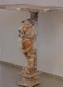 In the 7th millennium BC, the area around Mount Olympus and the Pieria Mountains was settled, possibly from the east.[1] The environment offered the settlers good living conditions, such as a mild climate, water, fertile farmland and hunting grounds. Finds from this period come from the area of Korinos, Ritini, Pigi Athinas and Makrygialos. Remains of settlements have been scarcely excavated, but found graves with various grave goods: stone and earthen figures, clay vessels, tools made of bone and stone, flint arrowheads and pieces of jewellery, which were made of bone or clay.[2]