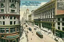 Schmitz was less corrupt than the mayors who preceded him,[29] but he had to deal with Ruef who operated from his offices at California and Kearney Streets. He wrote most of the mayor's official papers and conducted an ongoing series of meetings with Mayor Schmitz, city commissioners, officials, seekers of favors or jobs, and others. Officially an unpaid attorney for the mayor's office, he was the power behind the mayor's chair.[28]