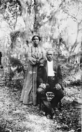 William Whitaker was the first documented pioneer of European descent to settle permanently in what became the village of Sarasota.[10] After time spent along the Manatee River at the village of Manatee, Whitaker built upon Yellow Bluffs, just north of present-day Eleventh Street. He sold dried fish and roe to Cuban traders working the coast and in 1847, he began a cattle business. In 1851, Whitaker married Mary Jane Wyatt, a member of a pioneer family who had settled the village of Manatee, that was about 13 mi (21 km) to the northeast along the river of the same name.