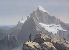 A Romantic veduta of Mount Triglav by the Carinthian Slovene painter Markus Pernhart. In the Romantic era, Triglav became one of the symbols of Slovene identity.