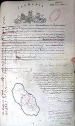 On 14 April 1863 Smooth Island, which was classed as agricultural Crown land at the time, was designated for sale at public auction on 23 April the following year, in accordance with the Waste lands Act. Several key clauses of the act were described.[28] It was initially listed for a minimum sale price of £227.[29] Thomas Gabriel Reid commissioned a detailed survey of the island which took place between 10 and 14 July 1863 (see survey report inset). It appears Thomas Gabriel Reid purchased the island on 21 April 1864 for only £155.[30] A "Thomas G. Read" was recorded as living in the nearby town of Sorell in 1866.[31] On 31 October 1894, Thomas Gabriel Read died at New Norfolk at 70 years of age. He was the second son of Captain G. F. Read.[32] Thomas Gabriel Read was a notable gold-miner. A detailed biography of Thomas Gabriel Read is available.[33]