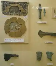 | Entrance to the Akhshtyrskaya Cave | A dolmen near Solokhaul (Sochi) | Plan of a dolmen at Krasnaya Polyana, bronze tips and axes found near Sochi |