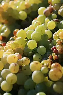 One of van Riebeeck's tasks include planting a vineyard, falsely believing the consumption of grapes and the wine produced from them is effective in avoiding scurvy among sailors on long sea voyages.[6] In 1654, the Dutch East India Company sent van Riebeeck grapevine cuttings from the Rheingau. These vines were packaged in damp pieces of sailcloth which negatively affected their ability to take root in the Cape's vineyards. During the following year a larger quantity of cuttings arrived from Bohemia, the Canary Islands, France, Germany and Spain. Among these were the Muscat Blanc à Petits Grains (known as "French Muscadel") and Muscat of Alexandria, known variously as "Hanepoot", "Hanepop" and "Hanepoot Spanish". In 1659 the first South African wine made from French Muscadel grapes was successfully produced.[5]