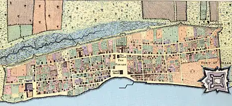 Moultrie was granted large tracts of land in the St. Augustine vicinity, upon which he established a plantation he called "Bella Vista." He owned another 2,000-acre (8.1 km2) plantation in the Tomoka River basin named "Rosetta".[48] While acting as the lieutenant governor, he lived in the Peck House on St. George Street.[49]