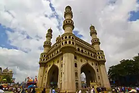 The Qutb Shahi rulers were patrons of both Indo-Persian and the local Telugu art and culture.[22] Early Indo-Islamic type of architecture is reflected in the Qutb Shahi buildings. Some examples of it include the Golconda Fort, Qutb Shahi tombs, Charminar, Mecca Masjid, Khairtabad Mosque, Taramati Baradari and Toli Mosque.
