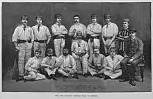 The Philadelphian cricket team was a team that represented Philadelphia in first-class cricket between 1878 and 1913. The team was composed of players from the four chief cricket clubs in Philadelphia: Germantown, Merion, Belmont, and Philadelphia. Players from smaller clubs, such as Tioga and Moorestown, and local colleges, such as Haverford, also played for the Philadelphians. Over its 35 years, the team played in 88 first-class cricket matches. Of those, 29 were won, 45 were lost, 13 were drawn and one game was abandoned before completion.[29] The "Gentlemen of Philadelphia" were able to win at least a match or two from all of the foreign sides that visited. They beat Australia's test team by an innings on two separate occasions, in 1893 and 1896[30] Throughout their first-class period of play, the Philadelphians produced such cricketers as Bart King, George Patterson, and John Lester.
