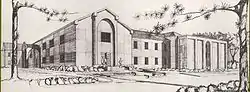 In 1954, the new Gymnasium and Physical Education building opened followed in 1955 by a new dining hall (named Palms Dining Center in 1981). Both structures were implemented according to the school's 1941 development plan. Both the gymnasium and the dining hall were designed by the schools long time design partner, the Edwards and Sayward firm's successor, Logan & Williams.