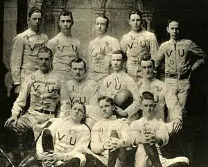 Vanderbilt and the University of Nashville played the first college football game in the state of Tennessee in 1890.[1] In late 1894, Vanderbilt was among the seven founding members of the Southern Intercollegiate Athletic Association (SIAA). Just after the turn of the century, the team enjoyed fairly substantial success, with a composite record of 20–3–2 from 1901 –1903.[2]