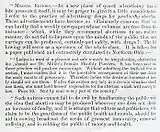 Such advertising aroused criticisms of quackery and immorality. The safety of many nostrums was suspect and the efficacy of others non-existent.[87] Horace Greeley, in a New York Herald editorial written in 1871, denounced abortion and its promotion as the "infamous and unfortunately common crime– so common that it affords a lucrative support to a regular guild of professional murderers, so safe that its perpetrators advertise their calling in the newspapers".[101] Although the paper in which Greeley wrote accepted such advertisements, others, such as the New York Tribune, refused to print them.[101] Elizabeth Blackwell, the first woman to obtain a Doctor of Medicine in the United States, also lamented how such ads led to the contemporary synonymity of "female physician" with "abortionist".[101]