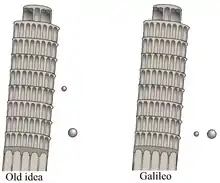 - Some historians consider this to have been a thought experiment rather than a physical test as there is little evidence that it actually took place.[32] Further, the premise had been proven at least two decades before Galileo's birth.[33]