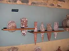 Diana Twede has argued that the "consumer packaging functions of protection, utility and communication have been necessary whenever packages were the object of transactions" (p. 107). She has shown that amphoras used in Mediterranean trade between 1500 and 500 BCE exhibited a wide variety of shapes and markings, which provided information for transactions. Systematic use of stamped labels dates from around the fourth century BCE. In a largely pre-literate society, the shape of the amphora and its pictorial markings conveyed information about the contents, region of origin and even the identity of the producer which were understood to convey information about product quality.[23] Not all historians agree that these markings can be compared with modern brands or labels. Moore and Reid, for example, have argued that the distinctive shapes and markings in ancient containers should be termed proto-brands rather than modern brands.[24]