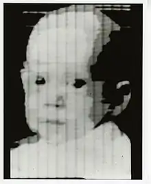 In 1957, a team led by Russell A. Kirsch at the National Institute of Standards and Technology developed a binary digital version of an existing technology, the wirephoto drum scanner, so that alphanumeric characters, diagrams, photographs and other graphics could be transferred into digital computer memory. One of the first photographs scanned was a picture of Kirsch's infant son Walden. The resolution was 176x176 pixels with only one bit per pixel, i.e., stark black and white with no intermediate gray tones, but by combining multiple scans of the photograph done with different black-white threshold settings, grayscale information could also be acquired.[59]