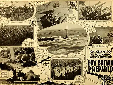 A variety of propaganda methods were used by the British during the war, with emphasis on the need for credibility.[21] Written forms of distributed propaganda included books, pamphlets, official publications, ministerial speeches or royal messages. They were targeted at influential individuals, such as journalists and politicians, rather than a mass audience.[22] Pamphlets were distributed to various foreign countries, primarily the United States: – these pamphlets were academic in tone and factual in nature, distributed through unofficial channels. By 1916, 7 million copies had been circulated by Wellington House in various languages.[23]
