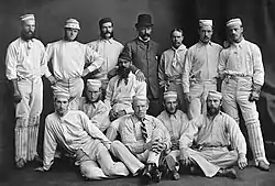 The History of the Australian cricket team began when eleven cricketers from the colonies of New South Wales (NSW) and Victoria formed an eleven to play a touring team of professional English cricketers at Melbourne in March 1877. Billed as the "Grand Combination match", the game is now known as the first Test match. Encouraged by a 45-run victory, the colonists believed that they had enough cricketing talent to take on the English on their own soil. A team organised and managed by John Conway, a former Victorian player, toured England during the 1878 season. After a discouraging loss to Nottinghamshire in the opening match of the tour, the Australians met a Marylebone Cricket Club (MCC) team at Lord's on 26 May 1878. Australia's upset win by nine wickets was "the commencement of the modern era of cricket", according to Lord Hawke.
