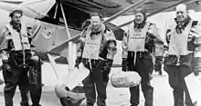 The CAP's alleged first kill was claimed by one of the larger aircraft on 11 July 1942. The Grumman G-44 Widgeon, armed with two depth charges and crewed by Captain Johnny Haggins and Major Wynant Farr, was scrambled when another CAP patrol radioed that they had encountered an enemy submarine but were returning to base due to low fuel. After scanning the area, Farr spotted the U-boat cruising beneath the surface of the waves. Unable to accurately determine the depth of the vessel, Haggins and Ferr radioed the situation back to base and followed the enemy in hopes that it would rise to periscope depth. For three hours, the crew shadowed the submarine. Just as Haggins was about to return to base, the U-boat rose to periscope depth, and Haggins swung the aircraft around, aligned with the submarine and dove to 100 feet (30 m). Farr released one of the two depth charges, blowing the submarine's front out of the water. As it left an oil slick, Farr made a second pass and released the other charge. Debris appeared on the ocean's surface, seemingly confirming the U-boat's demise and CAP's first kill.[7] CAP's Coastal Patrol operated for about 18 months (from 5 March 1942 to 31 August 1943) before being officially retired. During this time, the Coastal Patrol reported sighting 173 U-boats and dropping 82 bombs or depth charges. Overall, the Coastal Patrol flew 86,685 missions, logging over 244,600 hours. Coastal Patrol aircraft reported 91 ships in distress and played a key role in rescuing 363 survivors of U-boat attacks. 17 floating mines were reported and 5,684 convoy missions were flown for the Navy.[8][9]