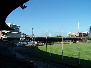 At the end of the 1896 season, Collingwood and South Melbourne finished equal at the top of the ladder with records of 14–3–1, necessitating a playoff match to determine the premiership; this was the first time this had occurred in VFA history.[4] The VFA delayed the playing of the final match between the two top teams for a week, to avoid adversely affecting the attendances of the other final round matches.[5][6] The game took place on 3 October 1896 at the East Melbourne Cricket Ground. Collingwood won the match six goals to five, in front of an estimated crowd of 12,000.[7]